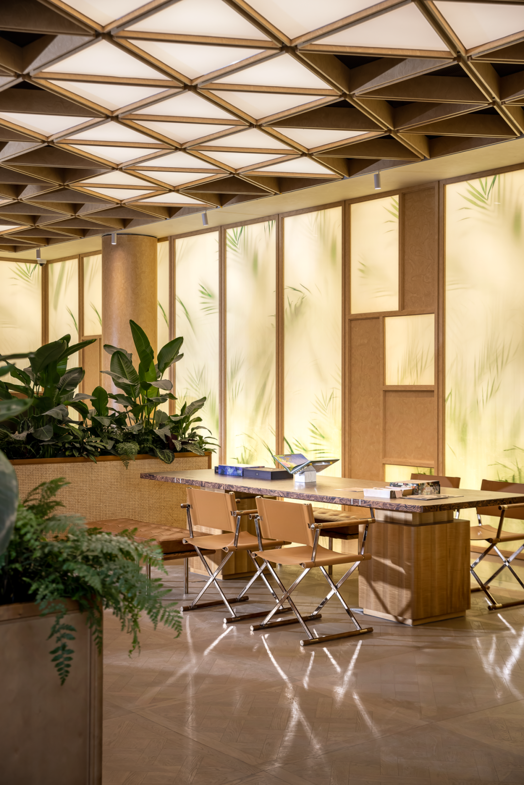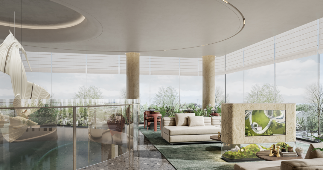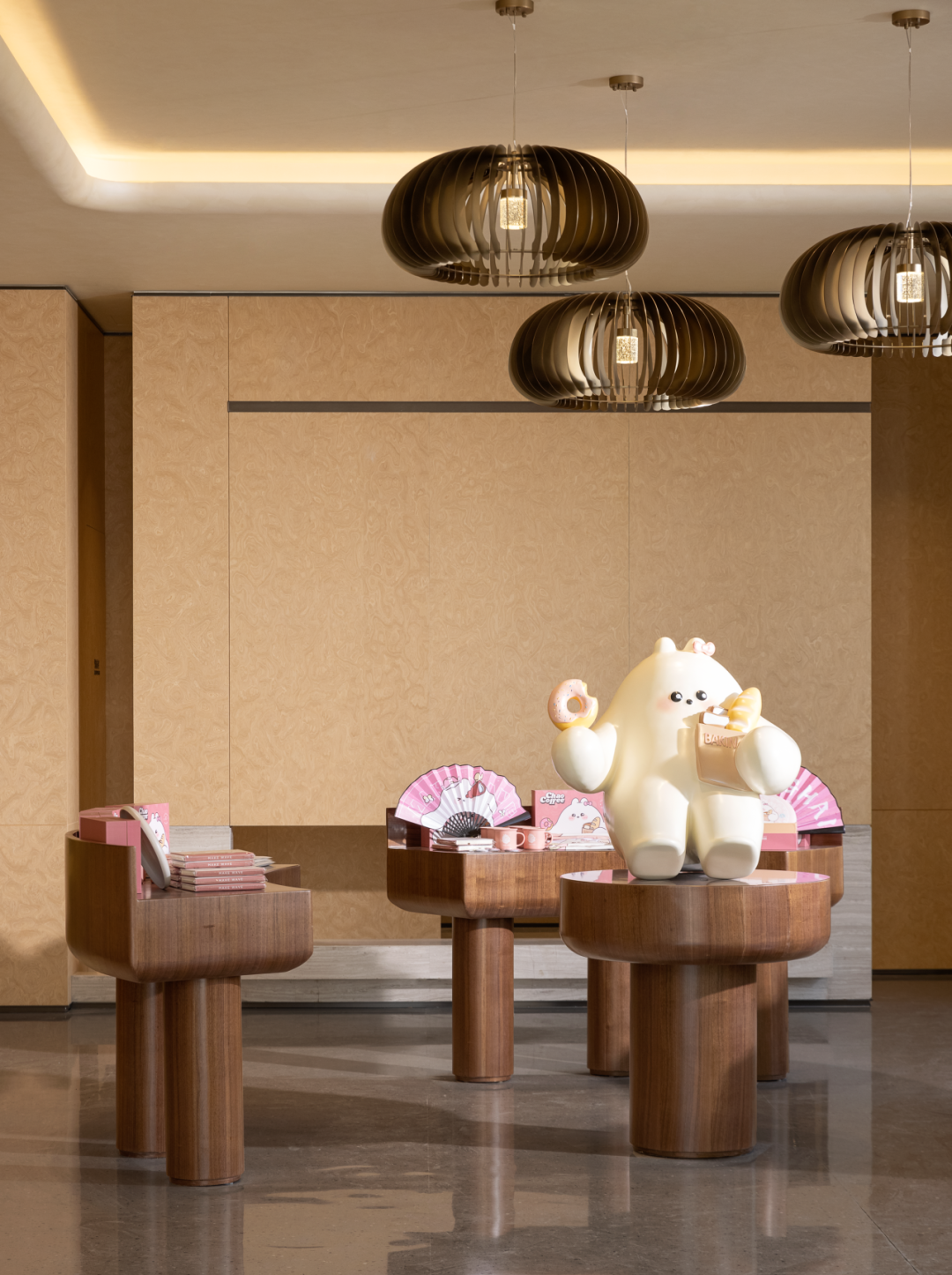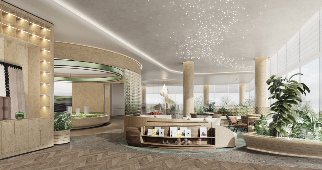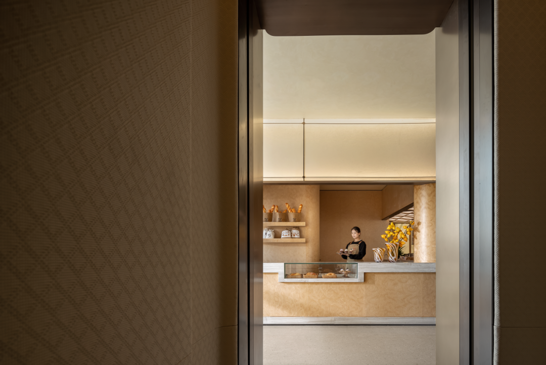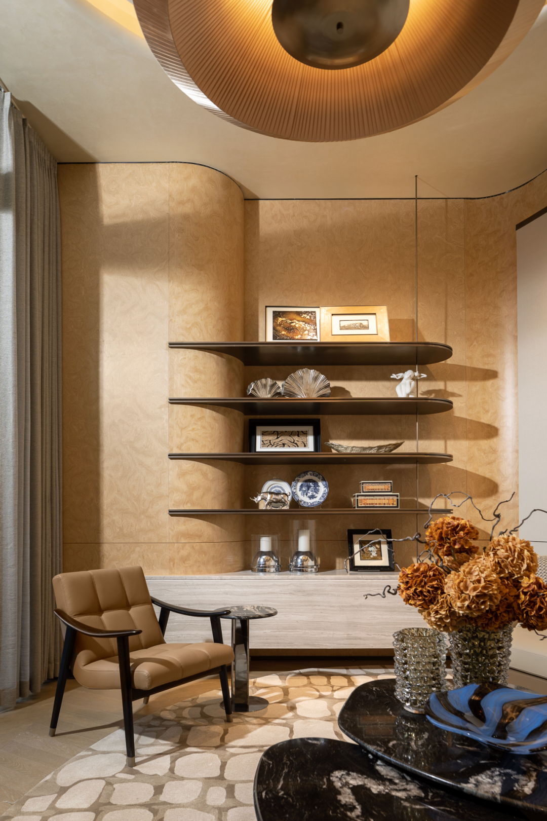 / Space renderings display ( 空间效果图展示 ) / Entrance Space ( 前厅接待 ) 设计超越了形式上的奢华,以宁静中蕴藏张力、克制中饱含温情,以现代的建筑语言和隽永的设计思考勾勒出关于生活愿景的美好构想。 入口扶梯盘如螺旋状的时间之塔,象征着不断向上的力量与进取之心。自然在这里不是被描绘,而是被感知和体验;建筑不是冷硬的容器,而是情感与记忆的温暖载体。 Model structure / 接待前厅 / Commercial Sand Table ( 商业沙盘 ) Second floor / 二层 沙盘区域以流动的曲线为核心,空间设计中关于时间与空间交互的象征,以艺术的方式连接地面与苍穹,托起人们对生活的美好愿景。 钢架结构的简洁力度与绿色水晶玻璃的灵动质感彼此交融,为整个空间注入蓬勃的生命力。 既如城市脉络的交织,又似春风拂过湖面的涟漪。它们在空间中交融,如星河下的波光粼粼,将流动的动态美学定格于一场绚烂的光影盛宴。 / Center Sand Table ( 中心沙盘 ) First floor / 一层 设计用流线、光影与材质书写出关于未来的诗篇,将奢华隐于质朴,将艺术寄于人文,让每一位踏入者都能感受到一种心灵的自由与愉悦。 中心沙盘不仅是空间导引的核心,整个商业空间通过不同区域的精心设计,将未来主义、现代简约、自然元素和人文关怀完美结合。 Flower Art Study / 花艺书坊 沙盘屏风的体块嵌入设计,通过几何块面的层叠组合与材质切换,屏风在视觉上打破了沙盘区域的单一性,使空间结构更具动态张力与视觉层次。 / Coffee & Negotiation ( 咖啡 & 洽谈 ) Coffee Bar / 咖啡水吧 设计在克制中展现张力,以最精炼的线条勾勒最饱满的情感关怀。透过设计语言的深度融合,为消费者营造沉浸式体验场景,见证着人与空间的互动。 Model structure / 咖啡水吧 商业区在此不再是被动的场所,而是充满艺术性和互动感的动态剧场,感知生活美学、交流情感的文化场域。 空间中的木与光、透明与反射相互交织,形成了不规则的形态感与视觉层次。 材质与结构在这里共同讲述着自然与人文的建筑叙事,仿佛延续着街头弄堂的旧日情怀。 VIP reception area / VIP会客区 VIP会客区以半开放式布局巧妙平衡了私密性与空间的流动感,打造出独具品位的尊贵氛围。 / Tea & Discussion salon ( 潮享茶舍 & 悦谈沙龙 ) Second floor / 二层 设计师以微妙的空间界限引导人们的视线流动,使场域的边界隐约而生动。 自然光透过柔玻璃幕墙倾泻而下,与室内精心布置的灯光相辅相成,营造出动静交织、光影错落的诗意氛围。 清晨阳光温暖而柔和,随着时间推移,光影逐渐转变为金色的绚烂辉光,映衬出空间的层次感与深度。 品牌引入 / 户外潮店 / Fashion Market ( 潮享市集 ) Third floor / 三层 室内活动区:文创市集的灵动人文与自然交融。天花板的模块化木质构件以有序的韵律排列,空间呈现虚实交替、光影渗透的动感体验。 原木材质的天然纹理与玻璃幕墙交相辉映,映射出流动的自然光影,模糊了内外界限,让空间如若隐若现,延展至窗外的绿意和城市的脉动。 Dessert Table / 甜品台 活动区不仅是交流与互动的空间,更是一场人文与自然主题的艺术剧场。环形展台兼具工艺感与艺术性,它们承载着人们对自然与文化的思索。 Ring booth / 环形展台 项目信息 Information ━ 项目名称丨上海泗泾TOD项目 · 时代潮派售楼处 项目业主丨招商蛇口上海公司 甲方团队丨招商蛇口产品管理中心、上海设计管理部 项目地址丨上海 · 松江泗泾 项目面积丨1300㎡ 空间设计丨纳沃设计 陈设设计丨集艾设计 摄影团队丨瀚墨视觉