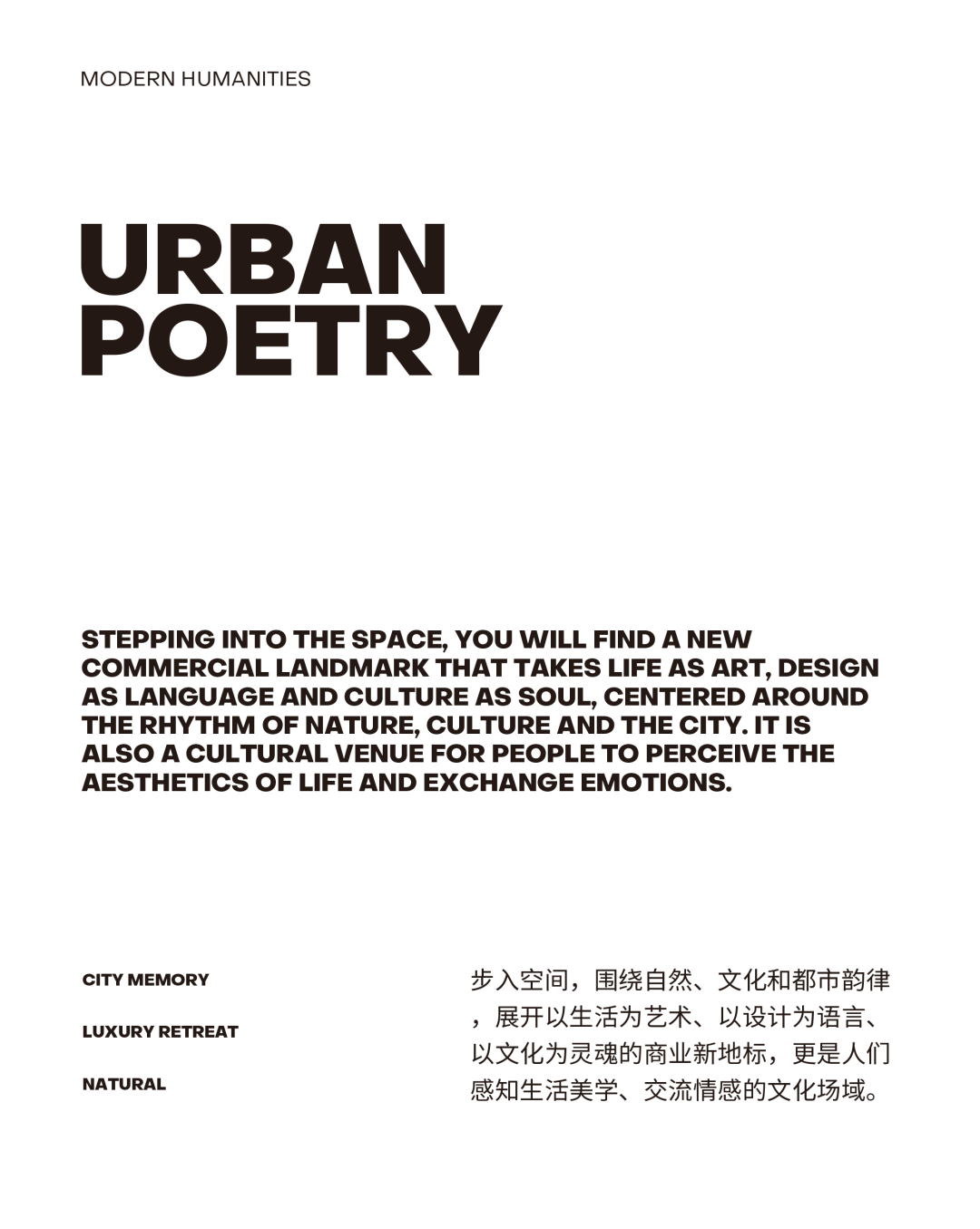 步入空间,围绕自然、文化和都市韵律,展开以生活为艺术、以设计为语言、以文化为灵魂的商业新地标,更是人们感知生活美学、交流情感的文化场域。设计超越了形式上的奢华,以宁静中蕴藏张力、克制中饱含温情,以现代的建筑语言和隽永的设计思考勾勒出关于生活愿景的美...