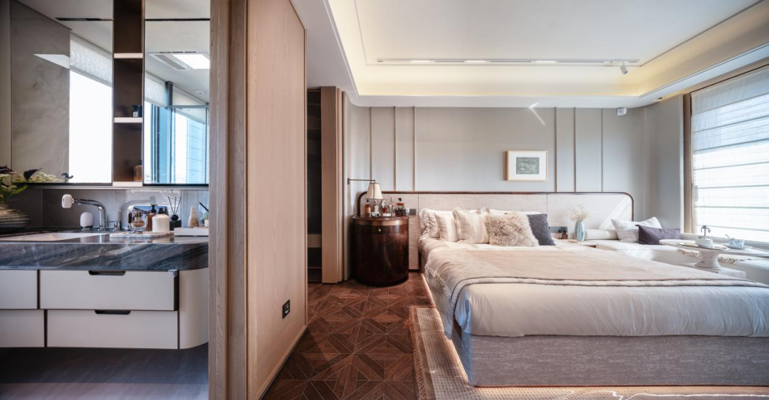 顶层近百平的独立套卧,典藏级私界尊属领域,室内预设步入式衣帽间、卫浴空间,南向约40m²广角全景空中花园,成为一个兼具私密性与景观性的精神自留地。